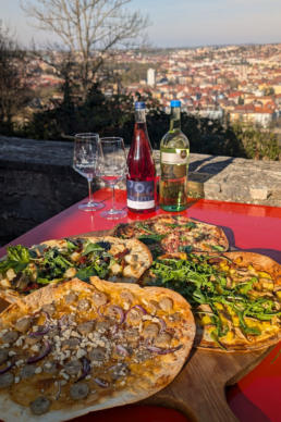 hausgemachte Flammkuchen und lecker Spritzgetränke.